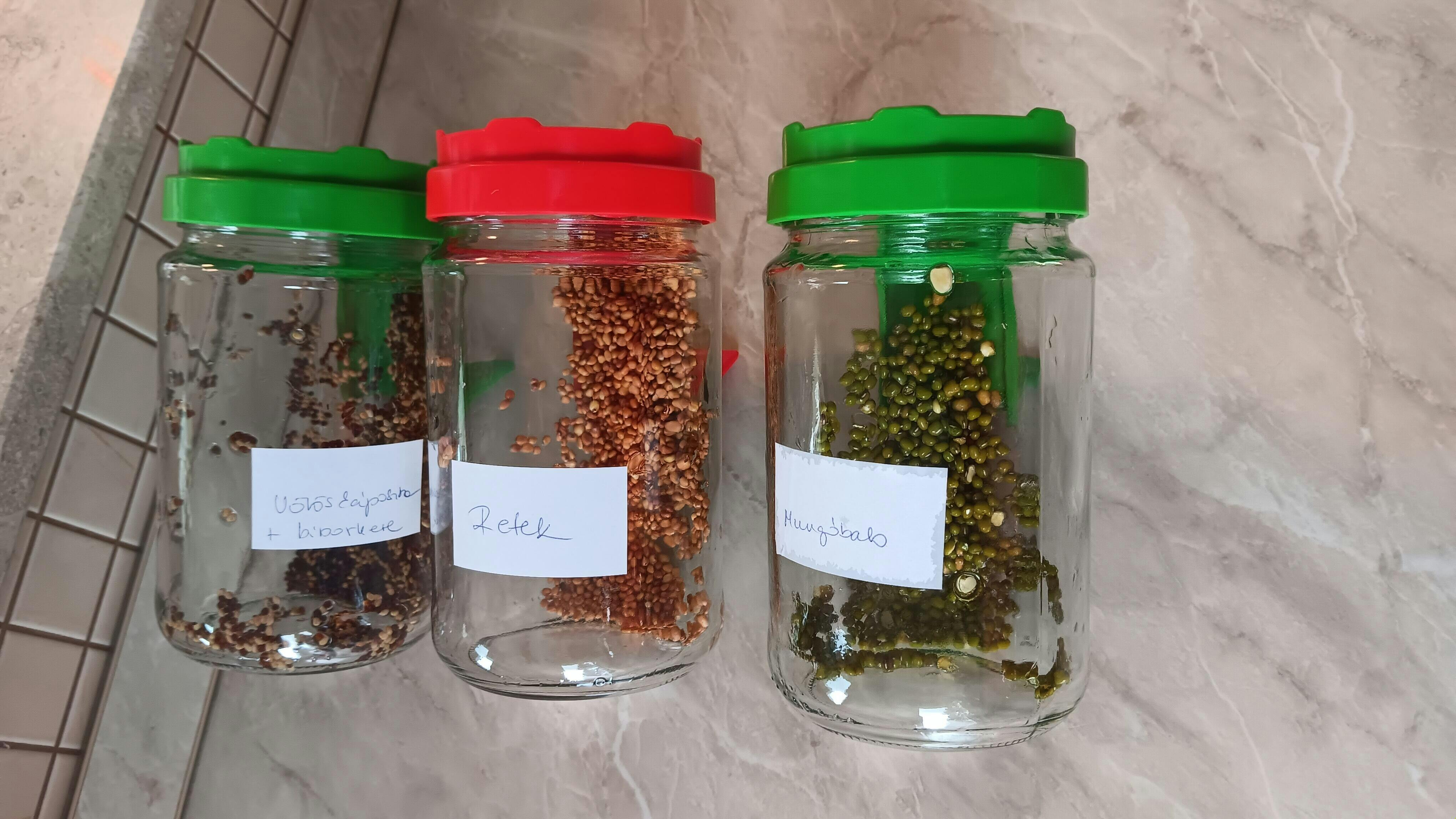 A maghéjak nehezen esnek le róla. Teheted egy tál vízbe a kész csírákat, óvatos morzsolgatással egy részük le fog esni. Ha nem zavar, akkor a többi maghéj annak ellenére, hogy kicsit kemény, ehető.